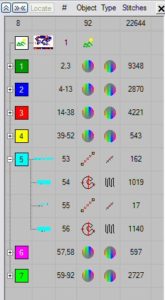 Along with pathing, color breaks go hand in hand. Generally, the design will need to be digitized from the background to the foreground so that elements of the design on top fall in front of parts that should be behind. The idea is to only visit each color of the design once if you can. (Some designs may require you to revisit colors later in the logo). A 3 color design that has 52 trims is a very poorly pathed design. Each trim is another possible thread break or pull out and slows the machine down. As an old boss of mine used to say, “We aren’t making money if the machine’s not running .”